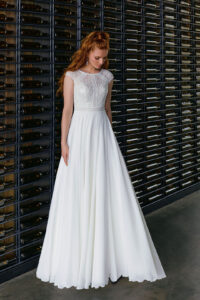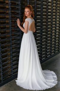 Leicht fallende A-Linie im Boho-Stil mit Glitzer-Spitzenapplikationen, geschlossenem Dekolleté & Schlüsselloch-Ausschnitt im Rücken. Das Kleid ist im Oberteil ein wenig zu klein: Unser Model ist 1,68 m, trägt Gr. 36/38 und hat Körbchengröße: 75A mit den Maßen: B: 89cm, T: 69cm, H:110cm.